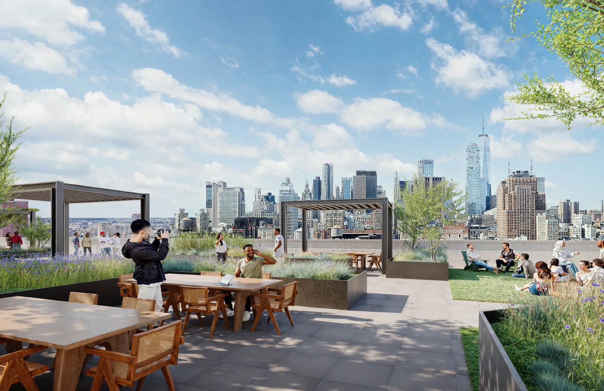 Activated rooftop terrace offering panoramic city views